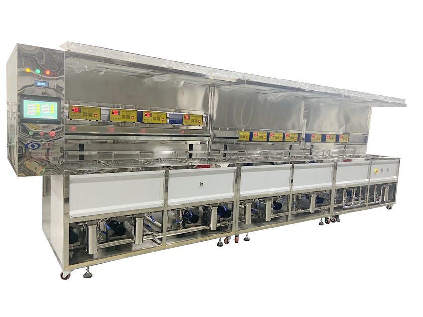 威固特VGT-1309FS激光保護鏡片超聲波清洗機設備采用13工位槽體布局,涵蓋清洗、漂洗、慢拉脫水及離心甩干全流程。模塊化結構支持根據工藝需求自由拆分組合,例如針對激光鏡片的鍍膜前清洗,可配置水基清洗劑槽與高純水漂洗槽,有效剝離粉塵、拋光粉及有機殘留物。