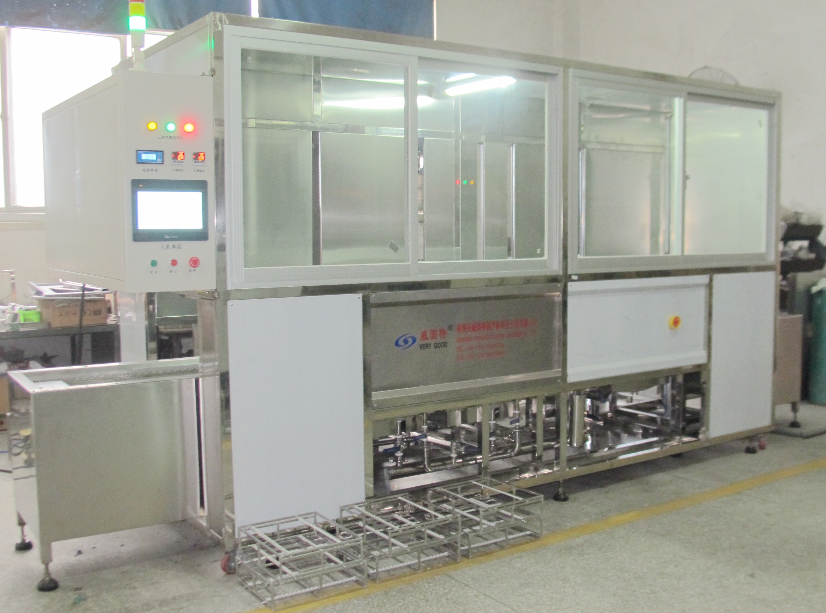清洗過程中工件通過超聲波高頻產生的“氣化現象”沖擊和系統自身不停地作上下運動,增加了液體的摩擦,從而使工件表面的污垢能夠迅速脫落。實現其高潔凈度的目的。